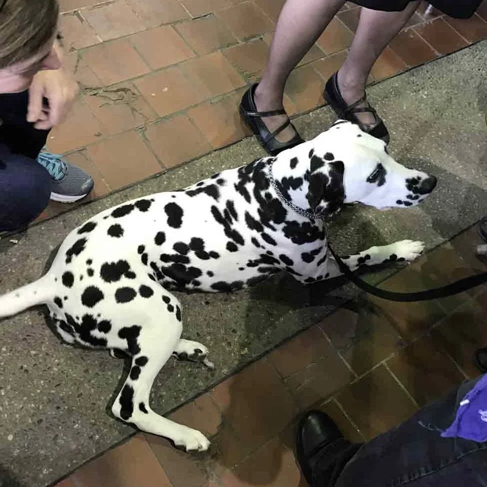Scroll back above: these dogs were bred to run alongside carriages, horses, and firetrucks.