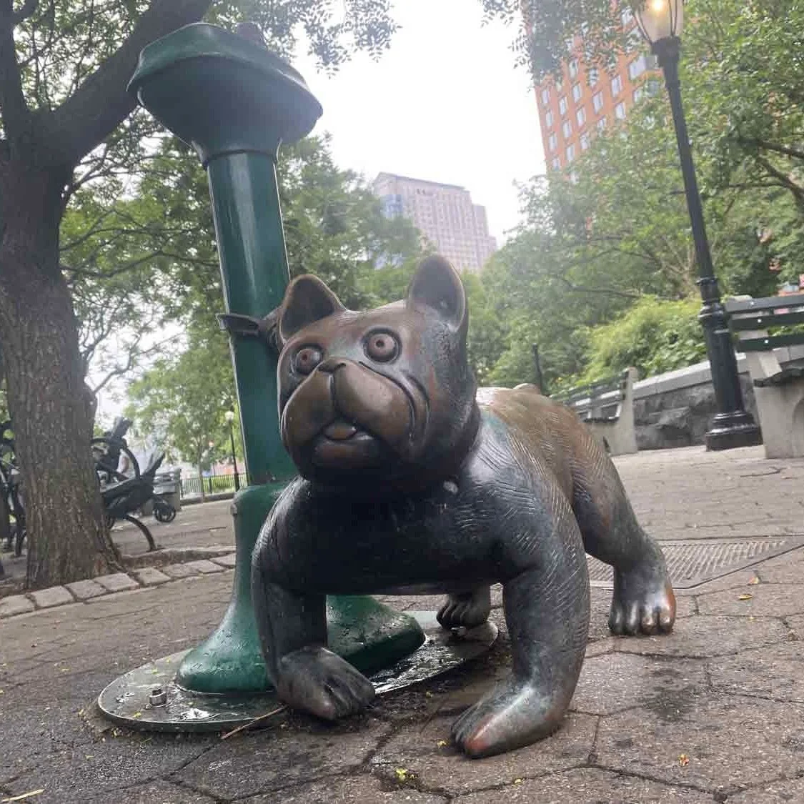 His work is definitely charming. The cute French Bulldog above is part of a grouping of statues that comprise a larger installation called The Real World. It is located in Nelson Rockefeller State Park in Battery Park City in lower Manhattan.