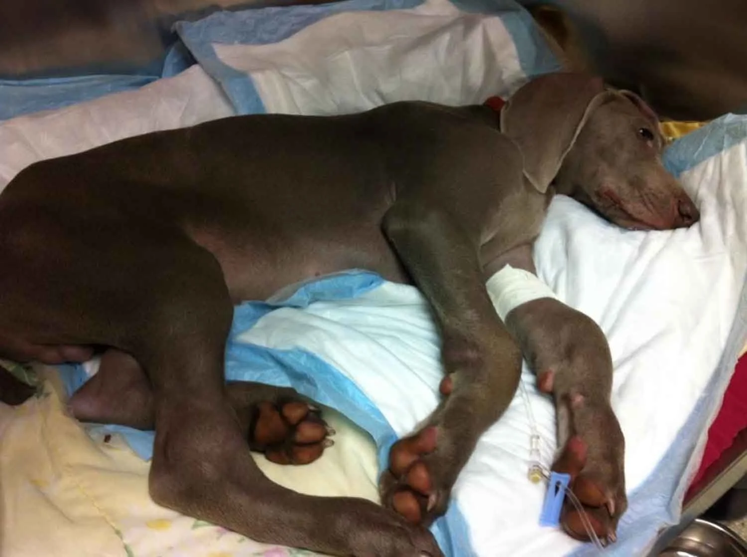 “Bodhi was a ‘nine’ on a ‘one-to-ten’ scale. Ten would be pups who by the age of two or three are dead due to complications” according to, Dr. Noa Safra, a veterinarian, former Weim breeder and an expert on the disease. He was ill for many months and hospitalized twice.
